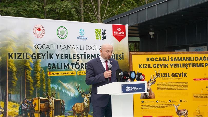 “Bugün de burada Ormanya Tabiat Parkı'nda üreyen kızıl geyiklerin Samanlı Dağları'nda yeniden çoğalması amacıyla İstanbul 1. Bölge Müdürlüğümüz ve Kocaeli Büyükşehir Belediyesince ortaklaşa yürütülecek olan proje için toplanmış bulunmaktayız. Bu proje kapsamında ilk olarak, Samanlı Dağları Kuzuyayla Tabiat Parkı'mızda; bugün itibariyle 8 adet dişi 2 adet erkek olmak üzere 10 adet kızıl geyik salınacaktır." dedi.